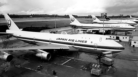 While the fuselage of the 747-200B was the same size as the 747-100, its performance was improved by increasing engine thrust, reinforcing the fuselage, and expanding fuel tanks. JAL introduced 17 747-200B aircraft over the decade of the 1970s.