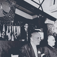 JAL inaugurates the Tokyo=Wake=Honolulu=San Francisco route as the first international flight service (with DC-6B plane, 2 round trips a week, one way fare; $650, ¥234,000).