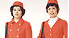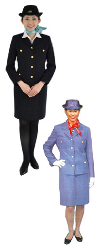 Designed by Hiromi Yoshida. The orthodox suits in mauve. With the change of the company name and the introduction of international services, it expressed the image of friendly and gentle ladies, and conveyed a sense of reliability and comfort. Scarves and aprons carried a pictorial design of aircraft.