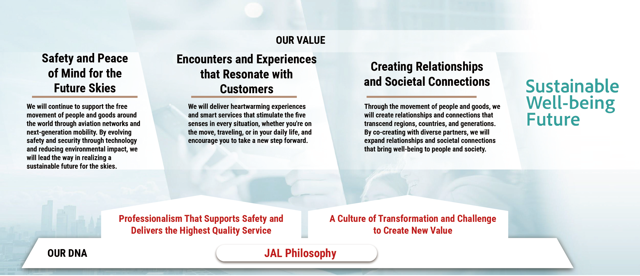 Providing value that leverages the strengths of the JAL Group, aiming for a sustainable and well-being future.
