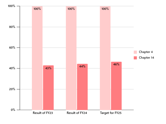 We are advancing the renewal of our fleet to the latest low-noise aircraft. Currently, all aircraft in our fleet comply with ICAO Chapter 4 (stringent noise standards). Furthermore, the proportion of aircraft meeting the even stricter latest standard, Chapter 14, has reached 44% (FY2024).
