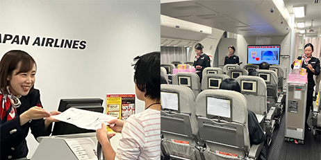 From the planning stage of the qualification, employees* of JAL Sunlight co., Ltd.This page will open in a new window, a special subsidiary group of the JAL Group, participated in creating inclusive learning materials combining the perspectives of flight attendants with those of people who experience barriers when flying.