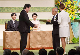 2015年4月9日に、東京・明治記念館において秋篠宮殿下・同妃殿下のご臨席を賜り、盛大な授賞式が執り行われ、本プロジェクトを代表して日本航空(株)代表取締役社長:植木義晴が登壇し、特別賞の賞状とトロフィーを受け取りました。