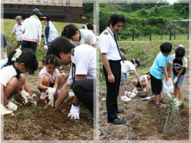子供たちが中心となってシャベルを使って20cmほどの深さの穴を掘ります。