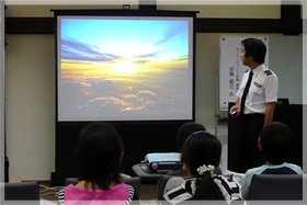この他にも、航空機による大気観測や森林火災の発見・通報など、JALが取り組む、航空会社だからこそできる環境活動についてもお話しし、地球温暖化を防止するために、何ができるか、またみんなで考えました。