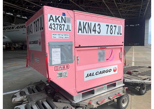 ピンクリボンコンテナは、乳がんの早期発見・早期治療の大切さを伝える「JALピンクリボンキャンペーン」の一環として2023年度から運用開始した、ピンク色に塗装したコンテナです。