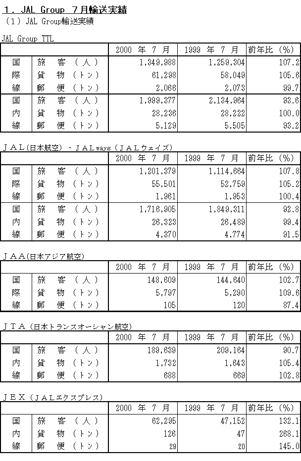 JAL Group Monthly Report