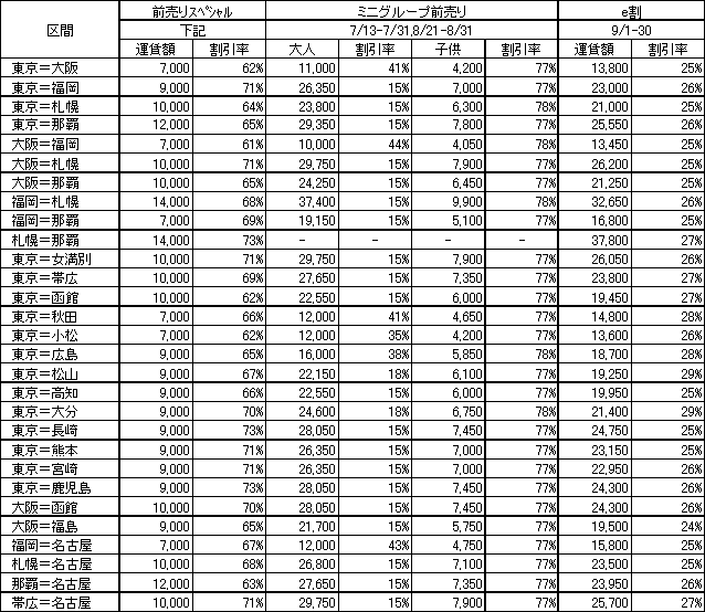 期間?:月曜日〜木曜日 期間?:金曜日〜日曜日 ※割引率は搭乗日に有効な大人普通運賃対比