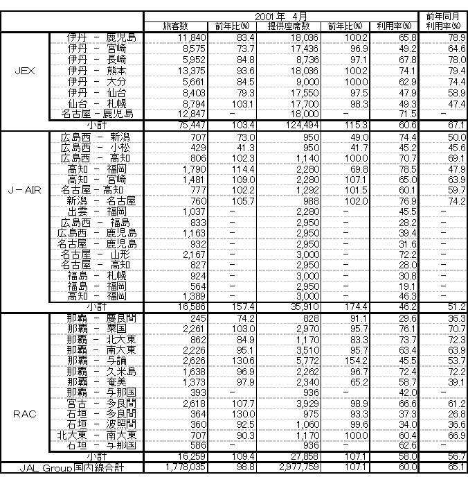 2001N0605ϊ ζ01025@JGAN JAL Group Monthly ReportQOOPNT |