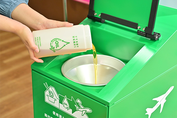 JALグループは、全国のご家庭から集まった油で空を飛ぶ世界の実現に取り組んでいます。