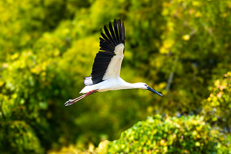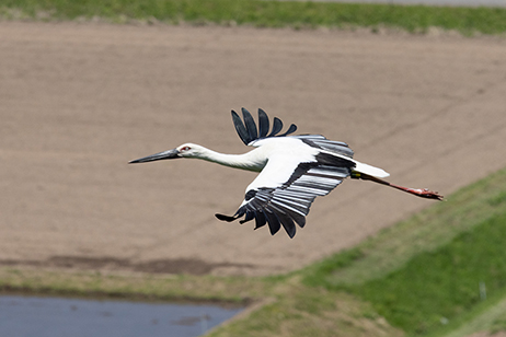 突然の出現に驚いている私たちの前をコウノトリは悠々とはばたきながら飛び去った。