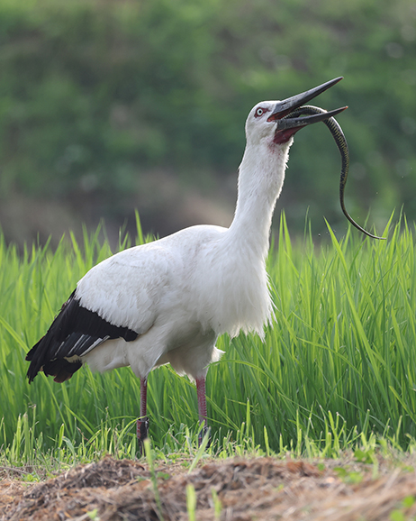 その後、湿地の再生や、農薬や化学肥料に頼らない“コウノトリ育む農法”といった環境づくりなど、野生復帰に取り組みました。