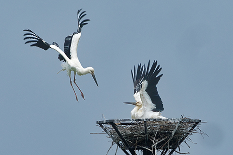 - ほぼ一生を添い遂げるコウノトリのペアの躍動感があり、かつ微笑ましい動きのある風景が評価できる。