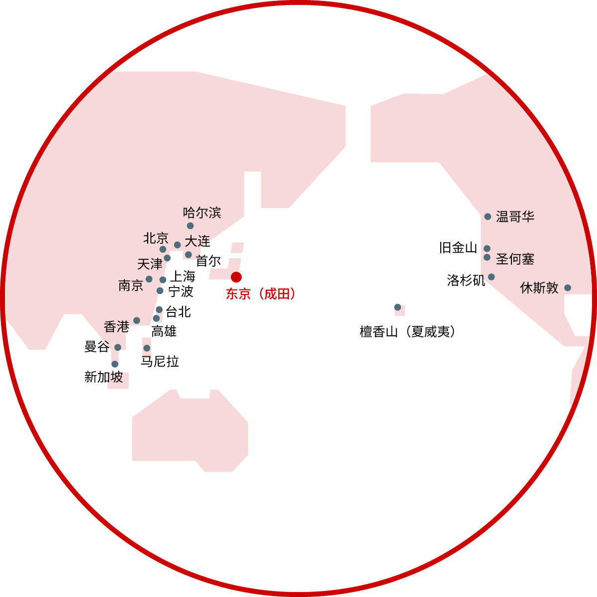 如果您要前往日本或世界各地旅行,推荐经由东京(成田)中转。