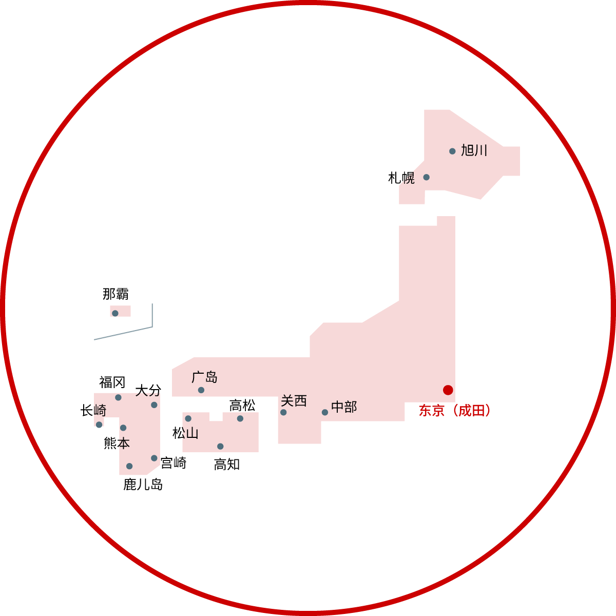 以东京(成田)为枢纽,搭乘“SPRING JAPAN”(春秋航空日本)或“Jetstar Japan”(捷星日本航空)的国内航班,便捷连接日本各大城市,轻松游遍各地。